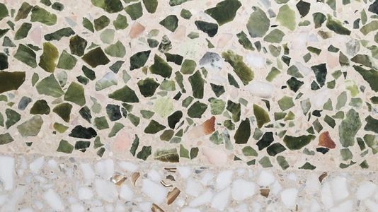 Miscela realizzata con granulometria medio-grande di qualità superiore come bianco lasa, rosa Portogallo e verde ming con spolvero di madreperla.